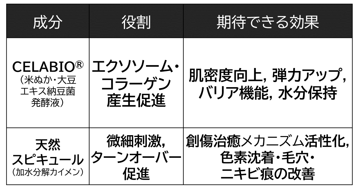 本メールでは、エクソソームを“内側で産生させる” と同時に、コラーゲン生成を高める「CELABIO®(セラビオ)」と天然スピキュールを組み合わせた攻めの美容液OEMをご提案いたします。