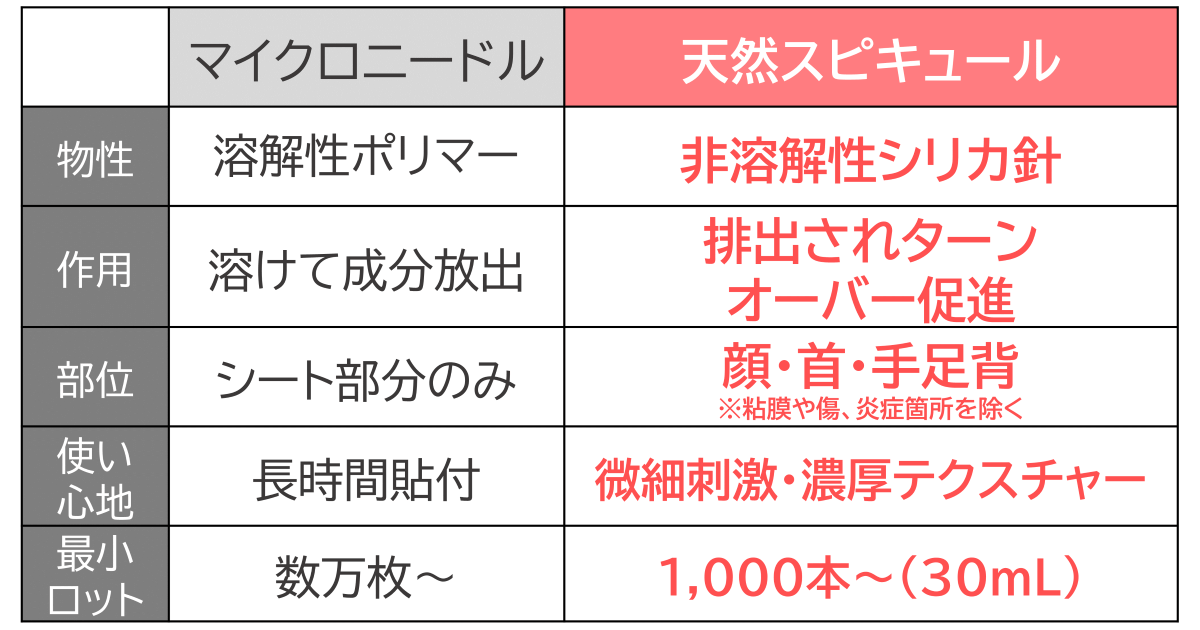 海綿から精製された天然の微細針であるスピキュール(加水分解カイメン)を配合しました。