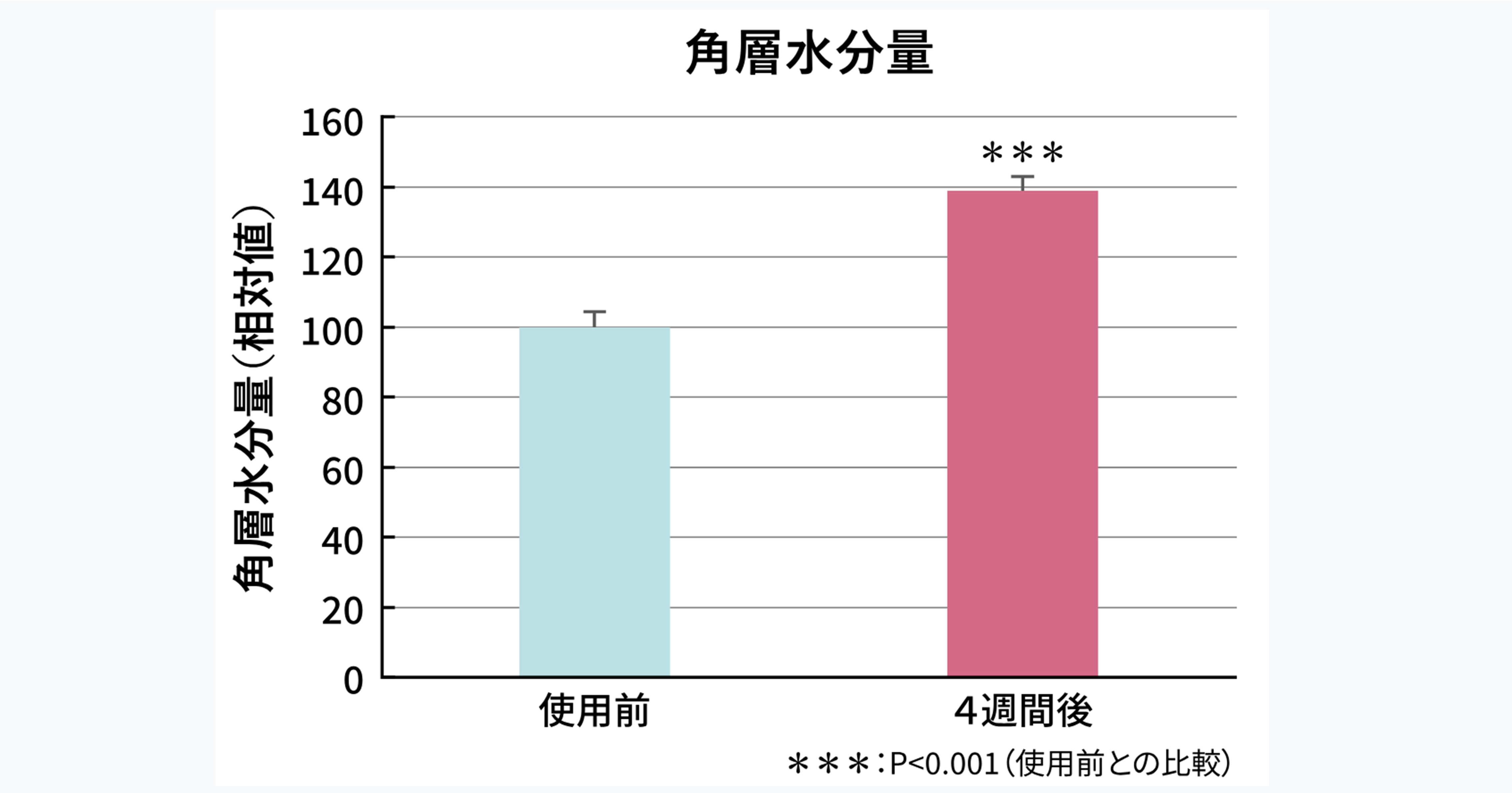 - 角層の水分保持能の増加と角層剥離の働きを促進し、ターンオーバーを正常化