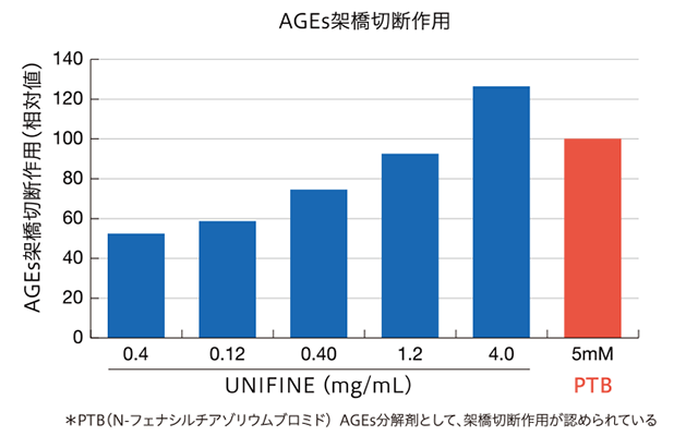 - 終末糖化産物(AGEs)の生成抑制作用と分解作用が確認されました。