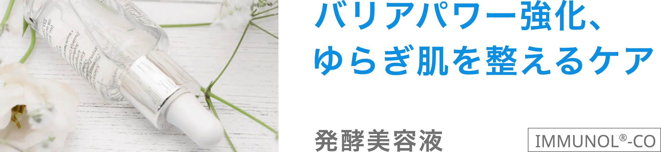 特許やエビデンスが豊富なオリジナルの発酵原料。発酵化粧品は、エンドユーザー様から機能性・体感・使用感の面でも大変ご好評いただいており、リピート率が高いのも特徴です。