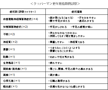 クッパーマン更年期指数問診票