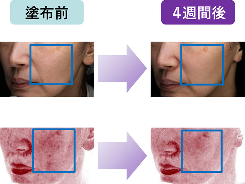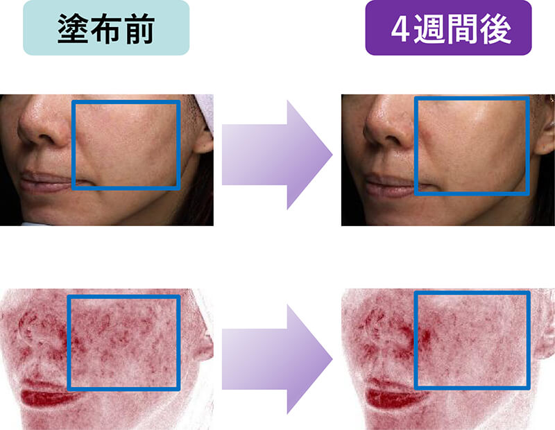 2.VISIAによる肌の赤み改善の塗布前後比較