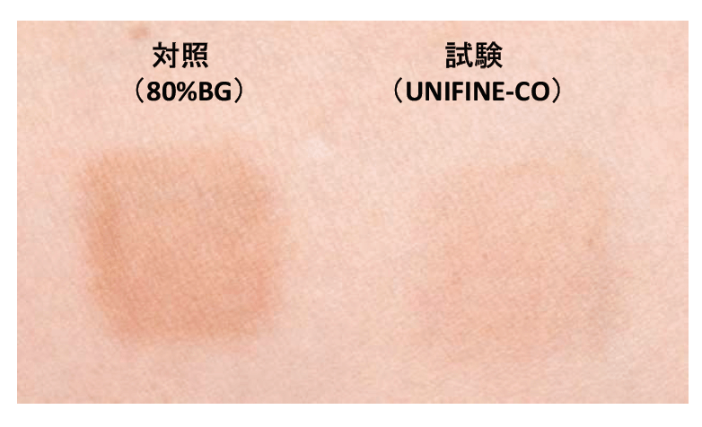 - ・対照液(80%BG)または試験液(UNIFINE-CO:100%)を含浸させた不織布を前腕内側部に20分間貼付