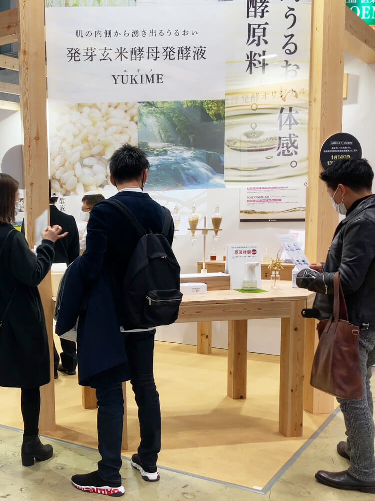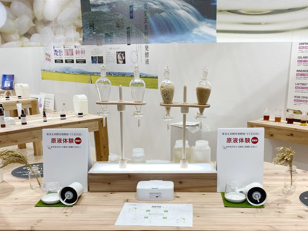 今回は、北海道品種「ゆきひかり」玄米を発芽し、酵母発酵させた新素材『YUKIME』配合のOEM提案品と、無菌充填システムによる養毛美容液をご提案しました。