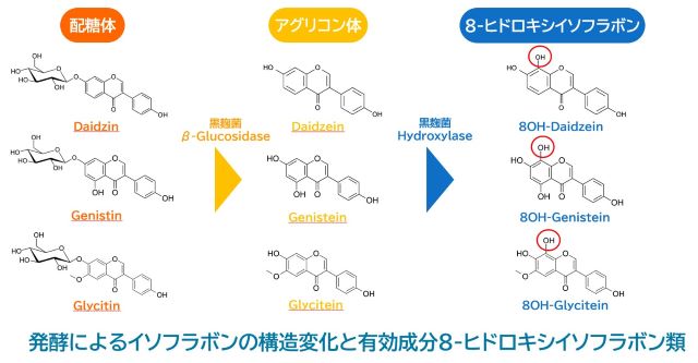 大豆エキスを麹菌で発酵させた大豆エキス発酵物は、「8-ヒドロキシイソフラボン類」が含まれ、
