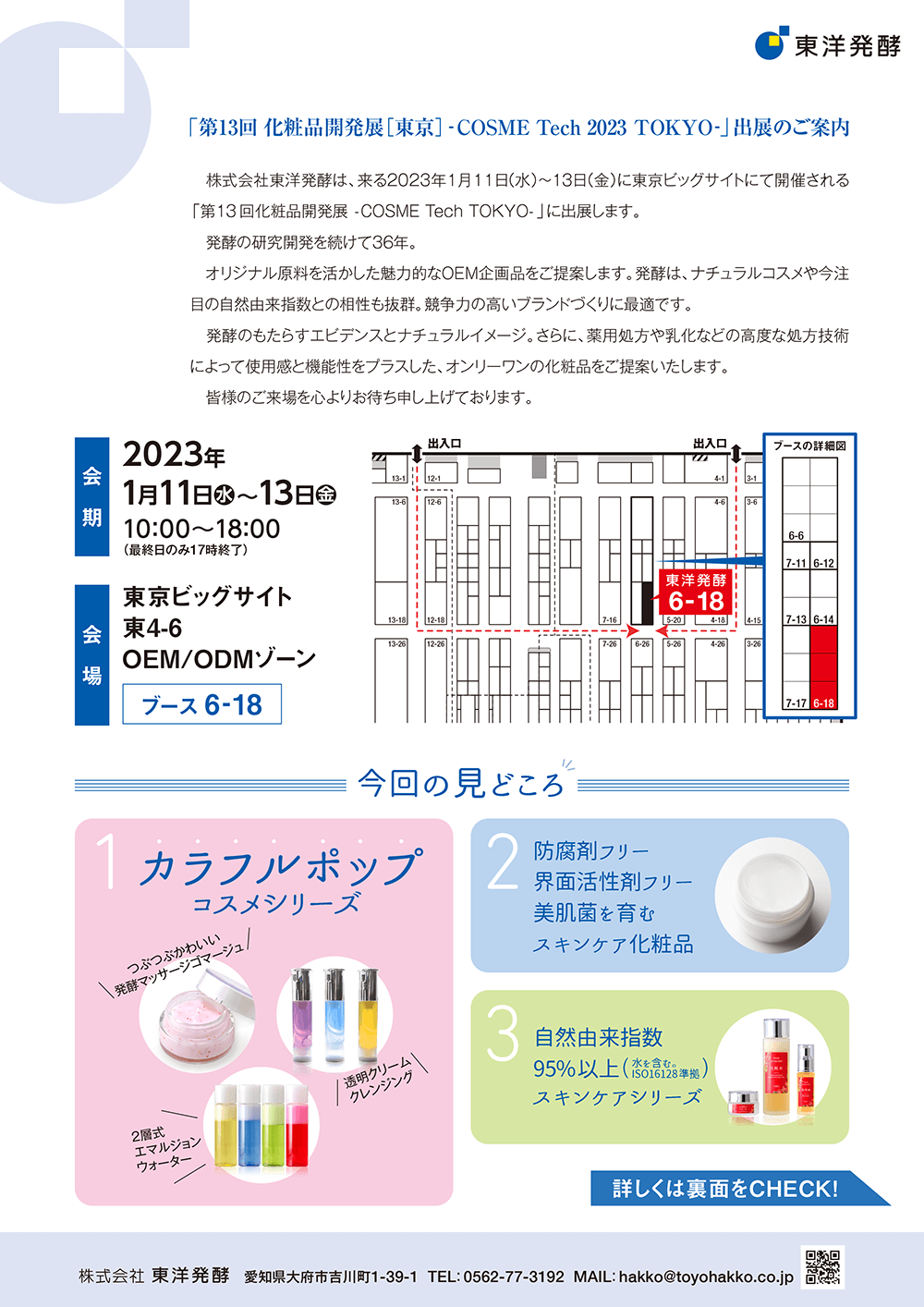 株式会社東洋発酵は、来る2023年1月11日(水)~13日(金)に東京ビッグサイトにて開催される