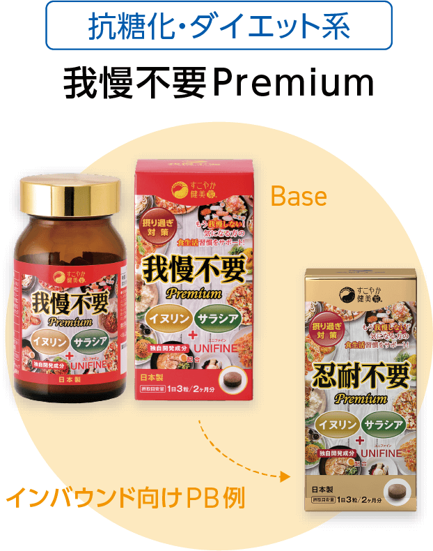 話題の抗糖化ドリンク、インバウンド向けサプリメント、美肌サプリメントなど、市販品の設計をもとに、オリジナル製品を迅速に立ち上げできるアイテムをご覧になれます。