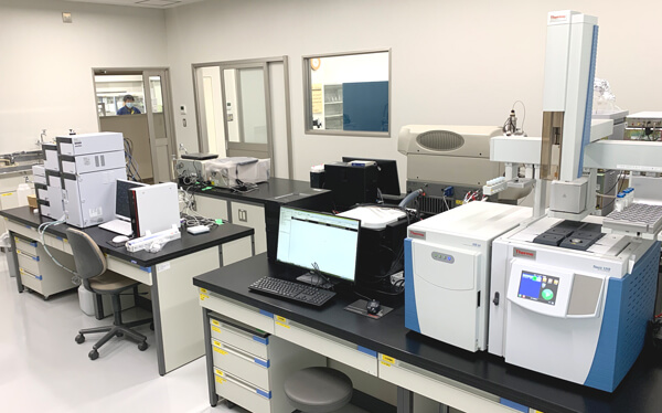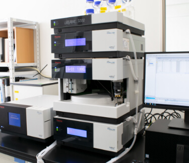 高性能分析機器を複数台保有。発酵によって生産された有効成分の機能性評価だけでなく、品質管理を目的とした残留溶媒等の定量・定性分析も徹底することで、高機能高品質な発酵原料の製品化を実現しています。