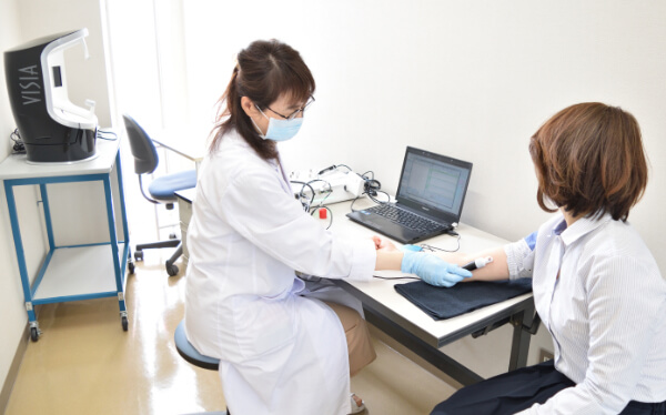 角層水分量、経皮水分蒸散量、皮膚粘弾性、皮脂量等の測定が可能なマルチ皮膚計測器があります。また、肌のキメ及び乾燥状態の観察ができるマイクロスコープや、最新のカメラと分析技術で顔のキメ、シミ、シワ、炎症、毛穴等の解析ができるVISIAも設置してあります。これらの計測器を用いて、化粧品や食品の皮膚への有用性研究のみならず、化粧品の原料開発及び処方開発における肌への効能評価を行っています。