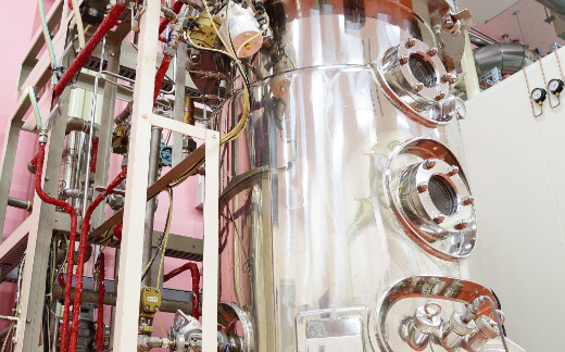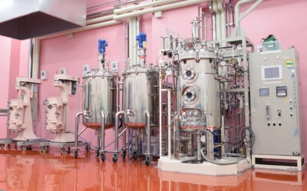 特殊な微生物を扱う専用のエリア。300L発酵槽をはじめ、ジャケット付きバッファータンクや恒温恒湿室が設置されています。また大型の空調システムを導入し、発酵時における室内のにおい低減や快適な温度管理など作業者への負担軽減対策も行っています。