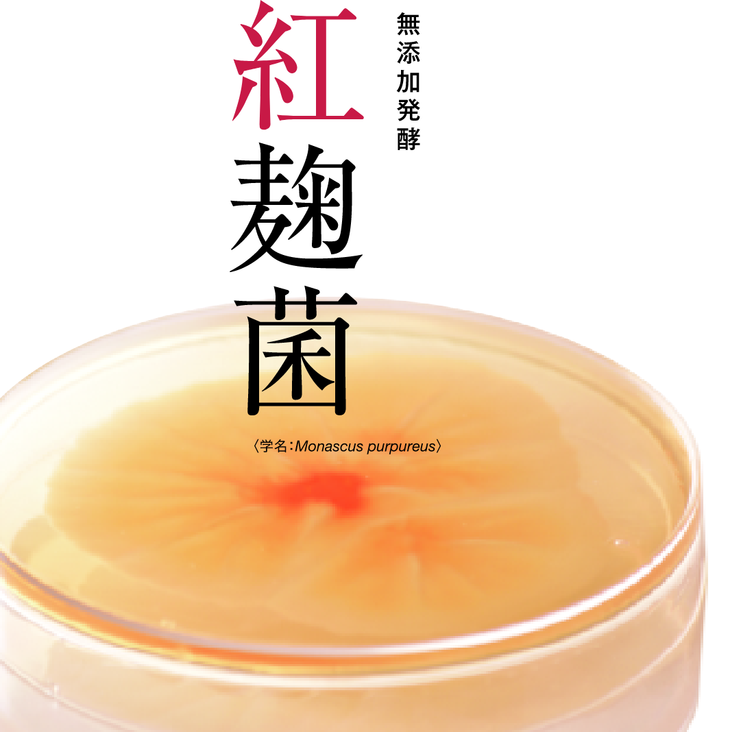 紅麹は米を分解する酵素を自分で作ることが可能。つまり、他の添加物を加える必要がない、無添加発酵が実現できるのです。肌に優しい、肌を守ることにこだわる。それが、紅麹菌を選んだ理由のひとつです。